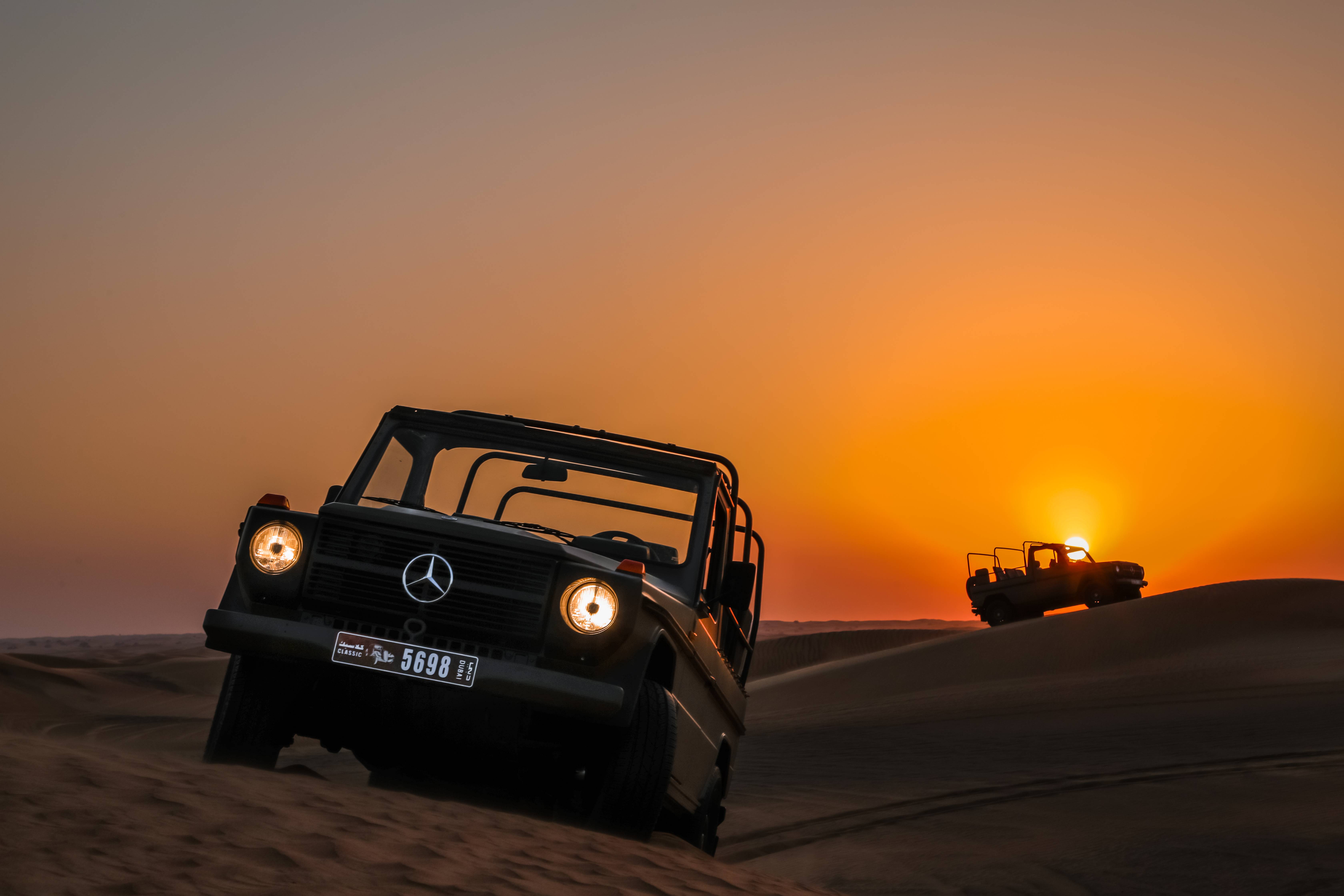 夜間穿越 Al Marmoom 綠洲的絲綢沙丘,是欣賞沙漠琥珀色美景的方式。乘坐這輛敞篷車,感覺自己在飛翔,一路上拍下美景的照片,還能看到野生動物。