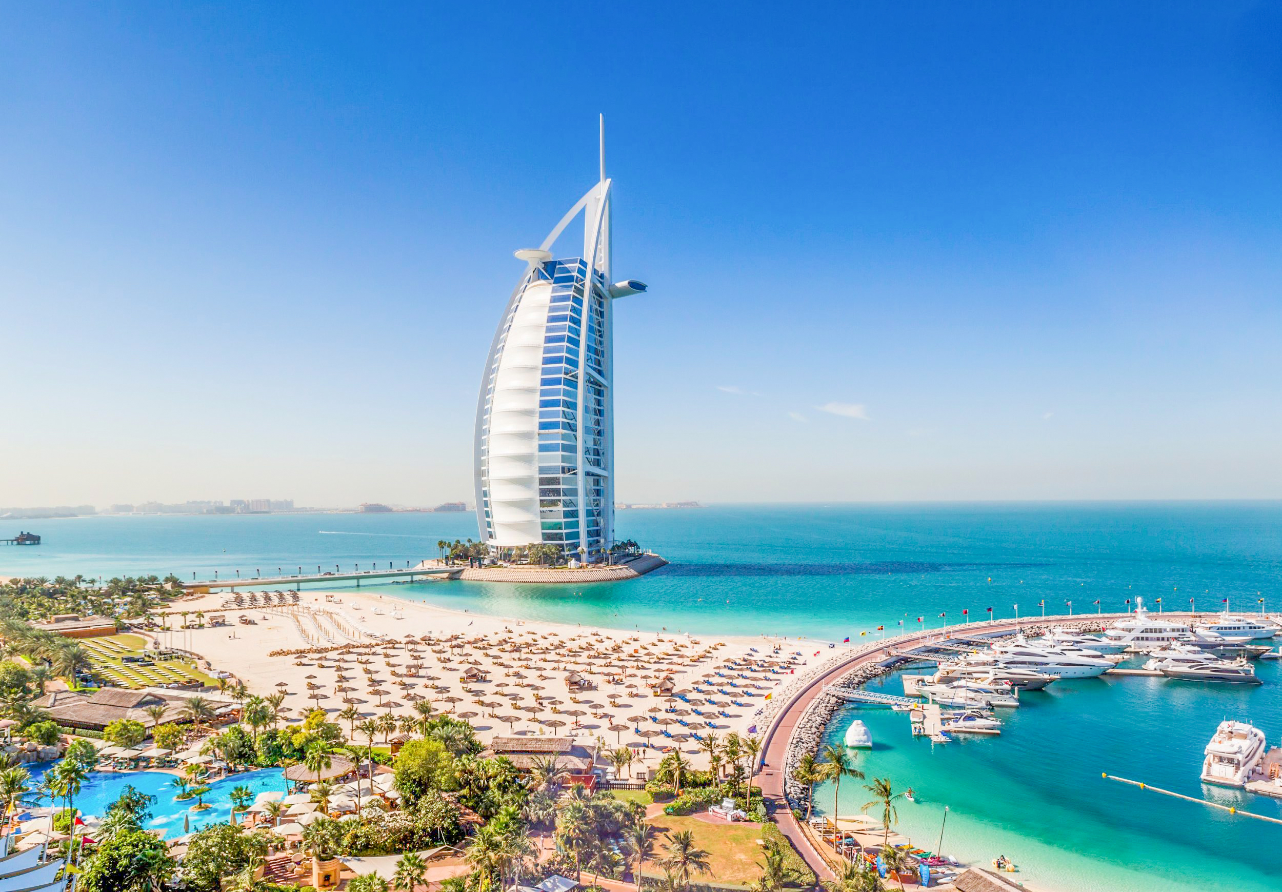 呈棕櫚葉形的朱美拉棕櫚島以其璀璨亮麗的酒店、公寓樓和高端全球餐廳著稱。朱美拉棕櫚島海濱木板路,以迪拜的海岸線風光和帆船造型的 Burj Al Arab 酒店聞名遐邇,還散落着不少供應沙瓦瑪等美味的小吃車。帶溫泉和無邊泳池的海灘俱樂部,到了晚上就化身成人聲鼎沸的夜店,還有現場 DJ 助興,造就一片紙醉金迷的景象。